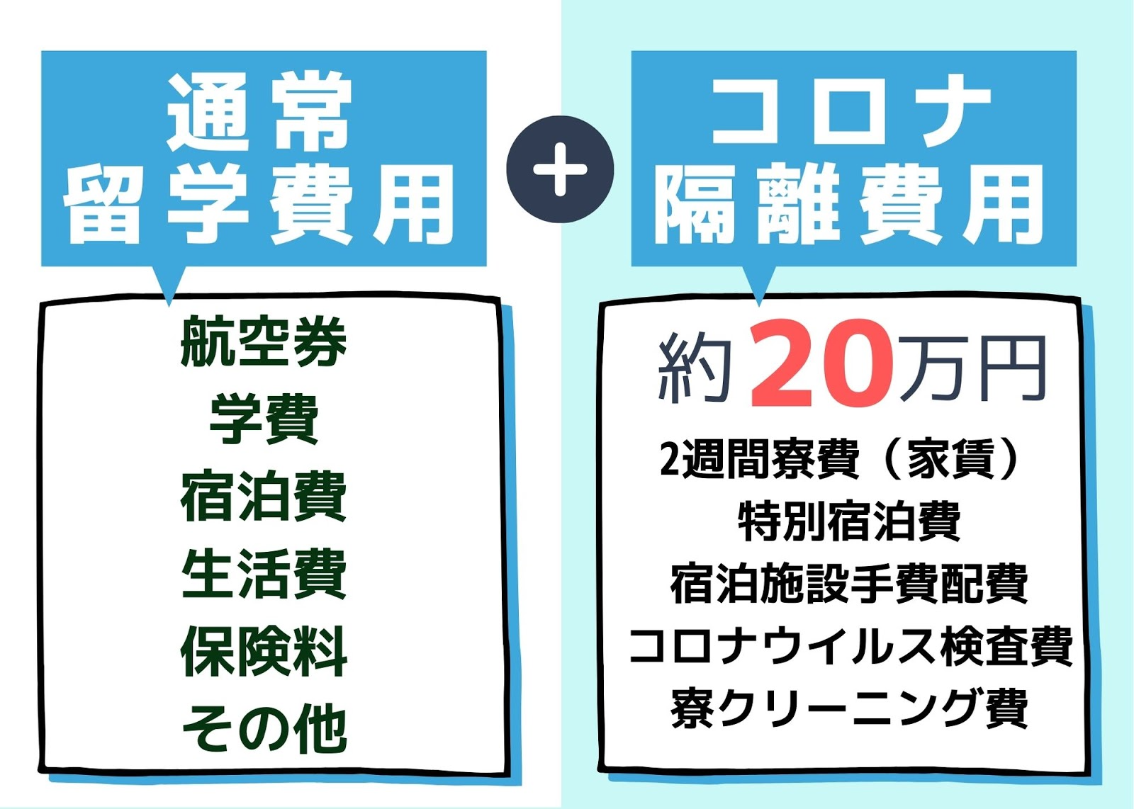 事実、コロナ渦の中カナダに留学する際は、2週間指定された宿泊施設での隔離やウィルス検査が義務付けられ、莫大な留学費用に加えて約20万円ほどの隔離費用がかかります。