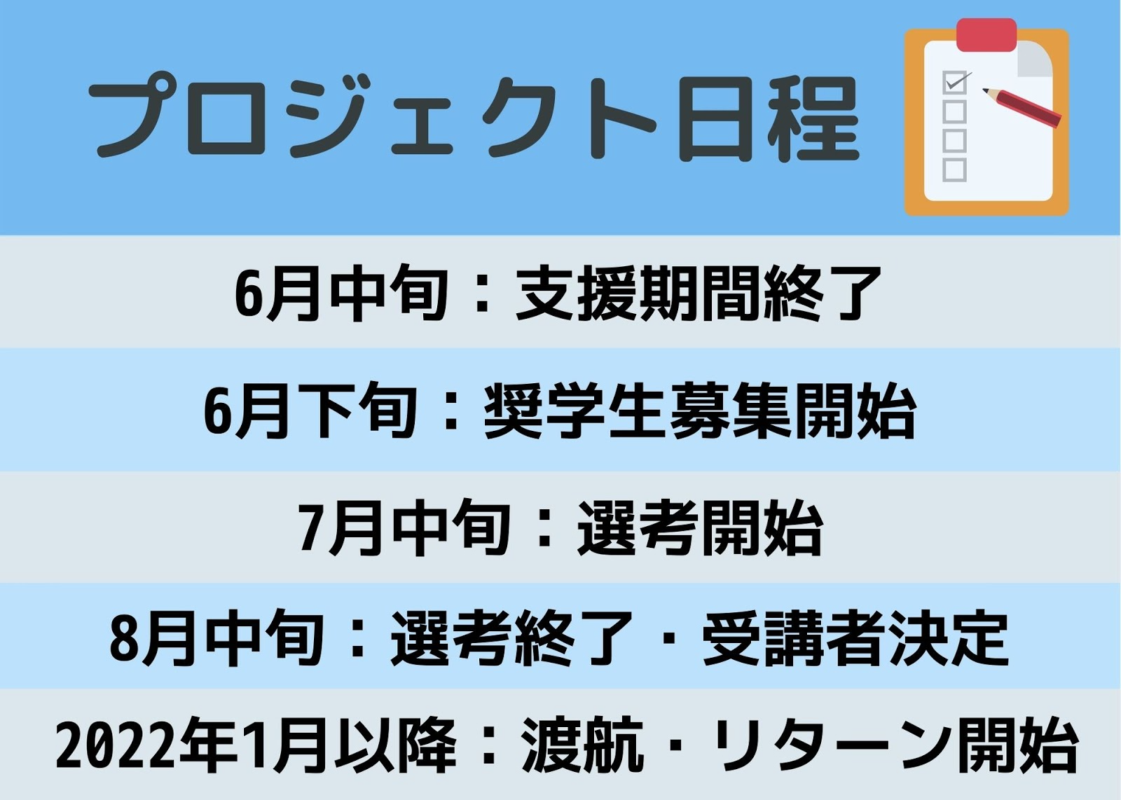 ※ Dream Fund奨学金の応募者は今年11月までに長期留学で渡航される方に限定します。詳しい応募条件はプロジェクト終了後に発表予定です。