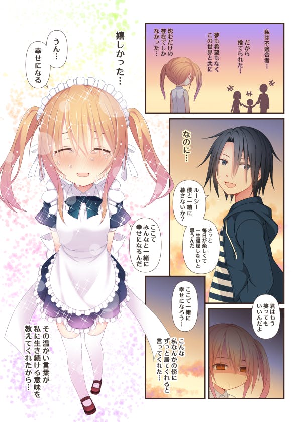 • 「かわいいメイドさんのほのぼのとしたちょっぴり泣ける日常を描いた物語」というタイトルにもかかわらず、泣けるシーンのサンプルがないのは不親切ではないかと思ったのでサンプル画像を制作してみました。今更遅いとも言いますが。そんなこんなで、ついに支援金が10万の大台に乗りました。こんな準備不足が炸裂している当プロジェクトにご支援いただきまして、誠にありがとうございます。残念ながら目標金額には遠いです。果てしなく遠いです。これも知名度と実力がない藍川にすべての責任があります。今思えば、こういうチャレンジは一年前に経験しておくべき事でした。一度でも経験していたなら、こんなアホな目標金額と重いリターンを設定しなかったと思います。何事も経験ですね。 もっと見る