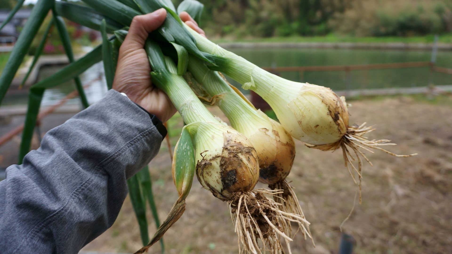 早めに収穫した今年の新玉ねぎ。これからさらに太ります。