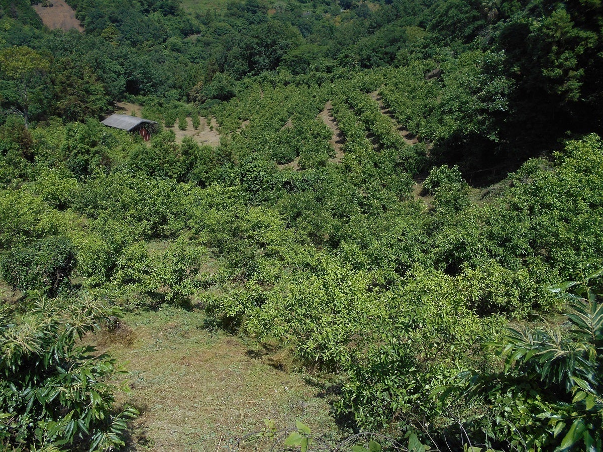 5年ほど前に改植した園地で、奥が甘平、手前が温州みかん(宮川早生)です。