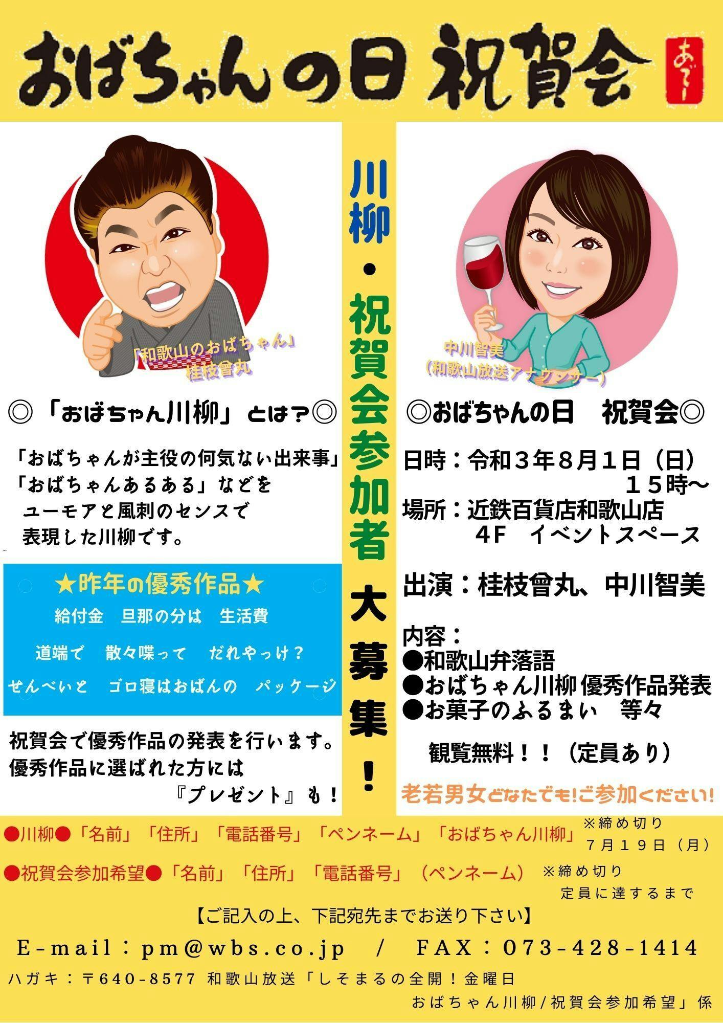 そして8月1日(日)の「おばちゃんの日 祝賀会への参加」募集も行っております!