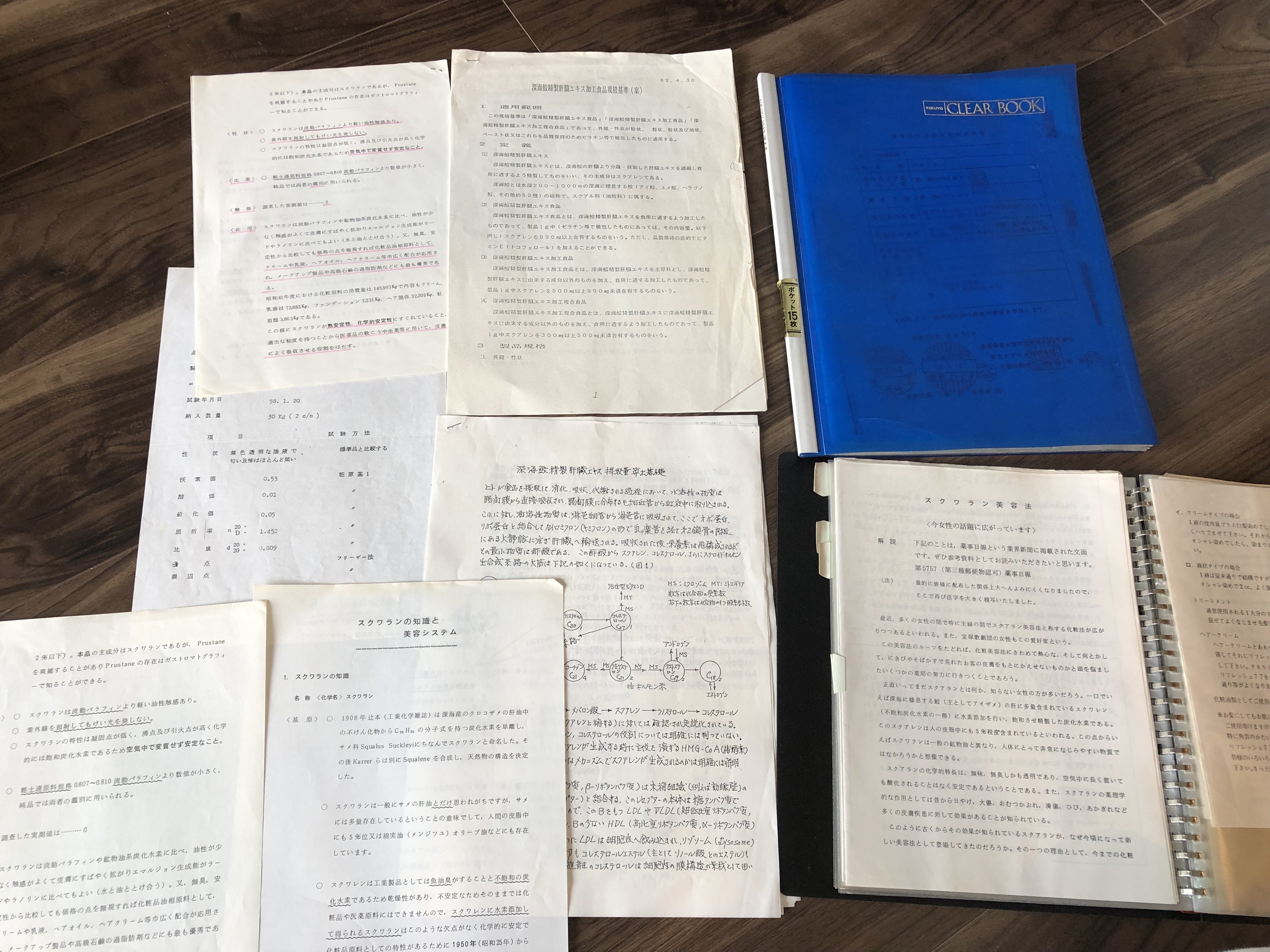 主人のお母様が残してくれたスクワランに関する膨大な資料のおかげで直接原料工場の方とお話しすることができました。お母様には本当に感謝しております。