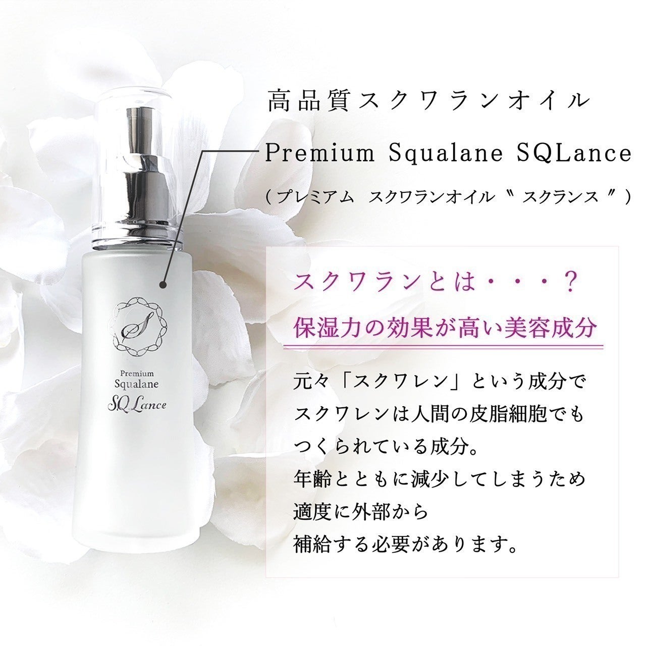 その中でも、60年以上世界中の大手化粧品メーカーに幅広く採用され、いわばプロが認めたスクワランを商品化したものが、この『SQLance(スクランス)』です。