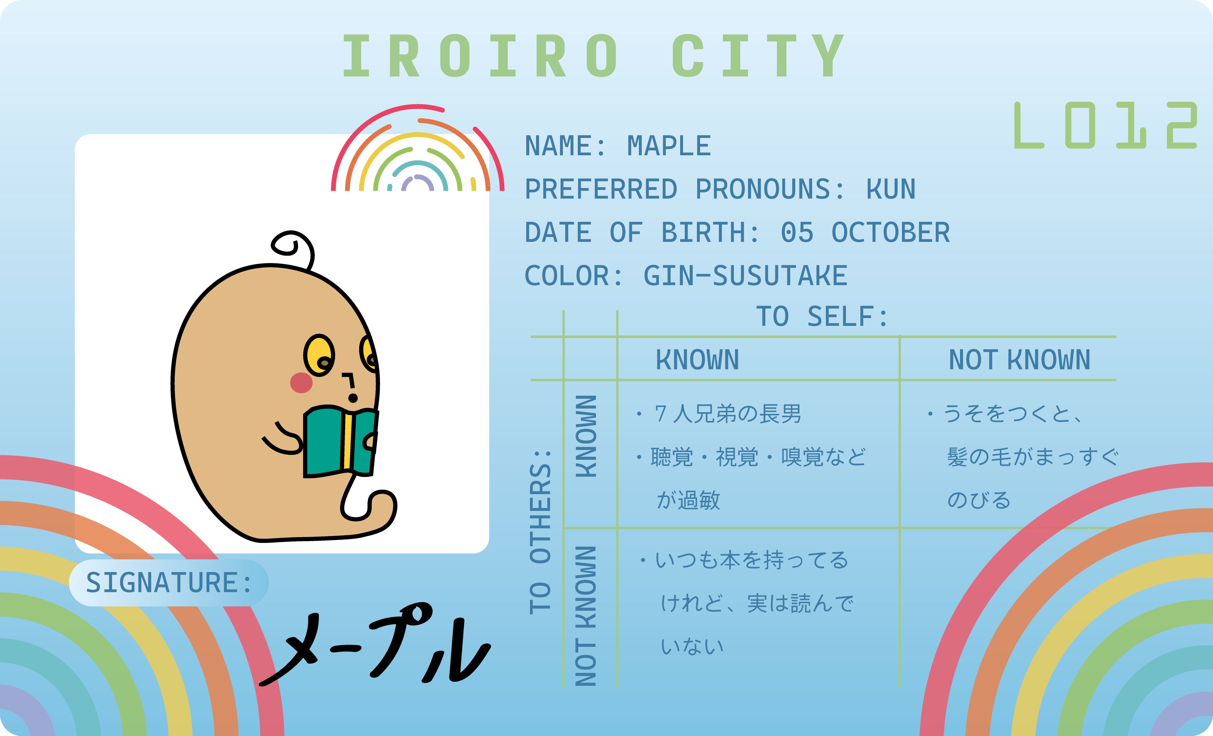 IROIROの住民カードのこだわりは、表示内容をジョハリの窓風にしたところです。