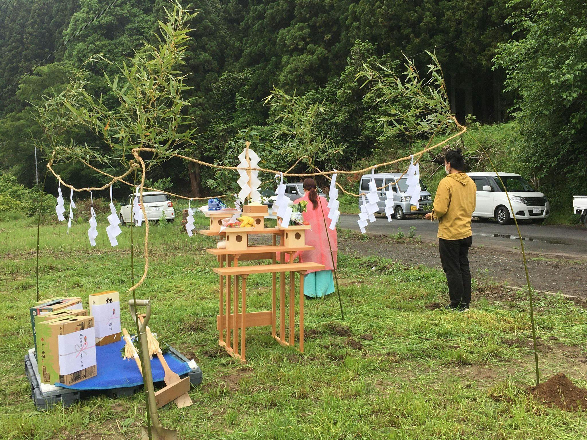 5月19日、小雨が降る中で、基地づくりにあたっての地鎮祭が執り行われました!