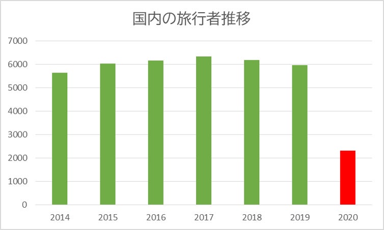 2020年の旅行者は前年と比較し6割も落ち込みました。