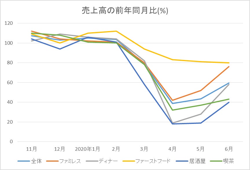 同様に飲食業界の落ち込みも同様で徐々に回復傾向にあるものの、資本が限られている飲食店では、まだ厳しい状況が続いています。