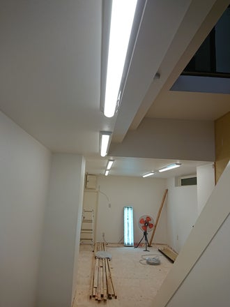 現在の工事進捗をお知らせいたします。 壁と天井の壁紙を貼り終わって、天井の照明まで取り付けました。温かみのある素敵な空間になりました。明るいですよ! まだまだ、ご支援お待ちしております!