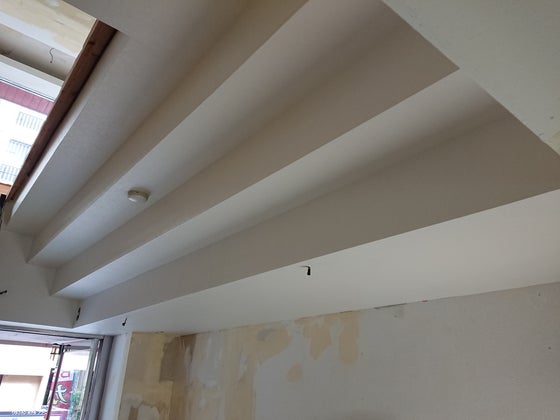 現在、壁紙の下地処理が終わって壁紙を貼りはじめました。
