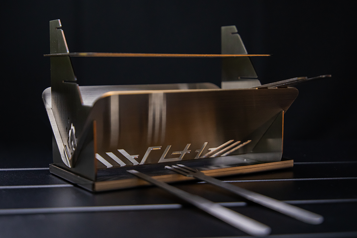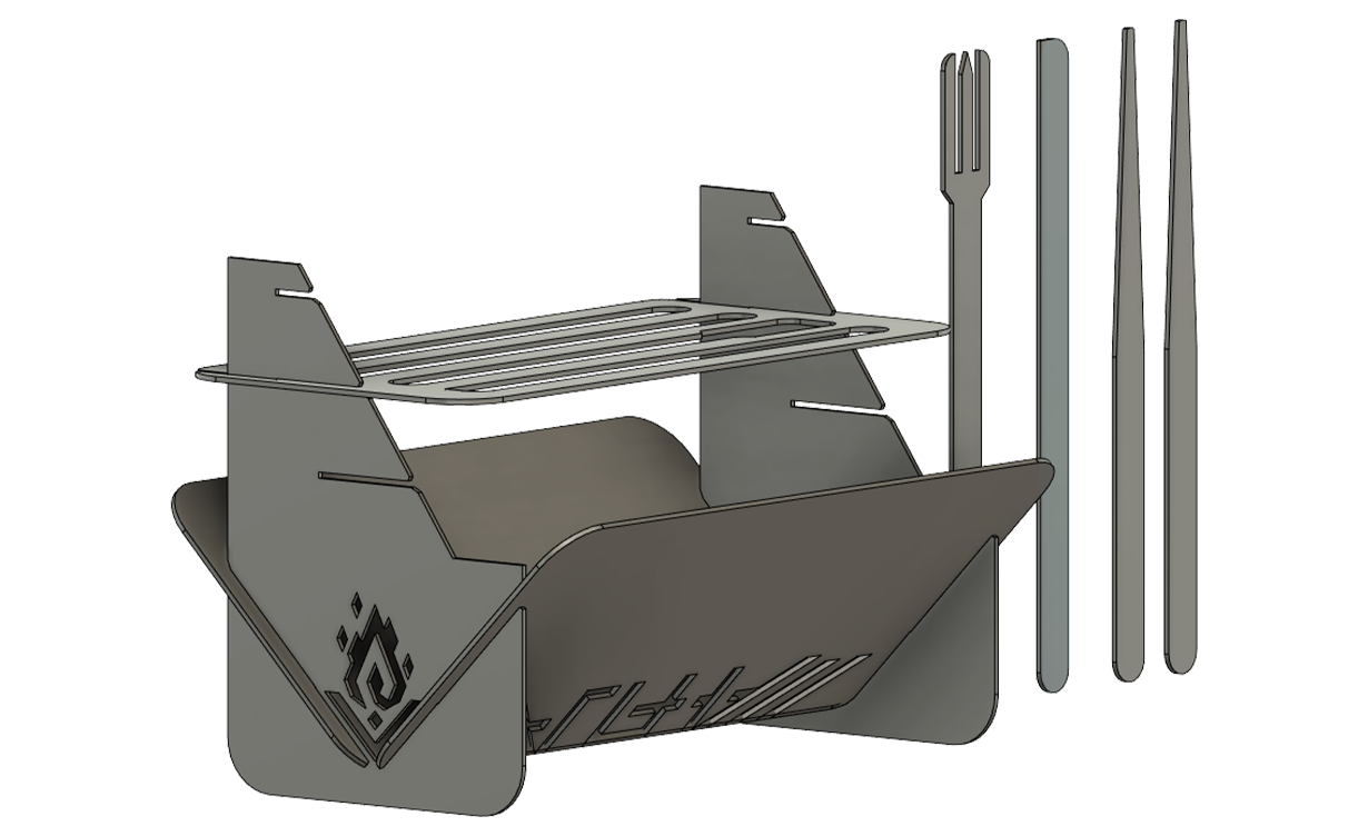ナイフ・フォーク・火箸・グリルプレートが収納されており、これ一台持っていくだけで余計な道具を持つ事が不要に。