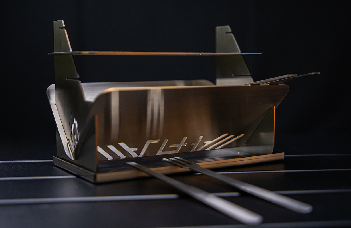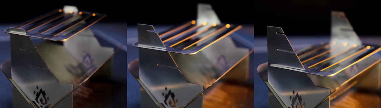 ※ヘアライン加工は焚き火を想定しておりますので焚き火台の各パーツ片面のみの加工となっております。