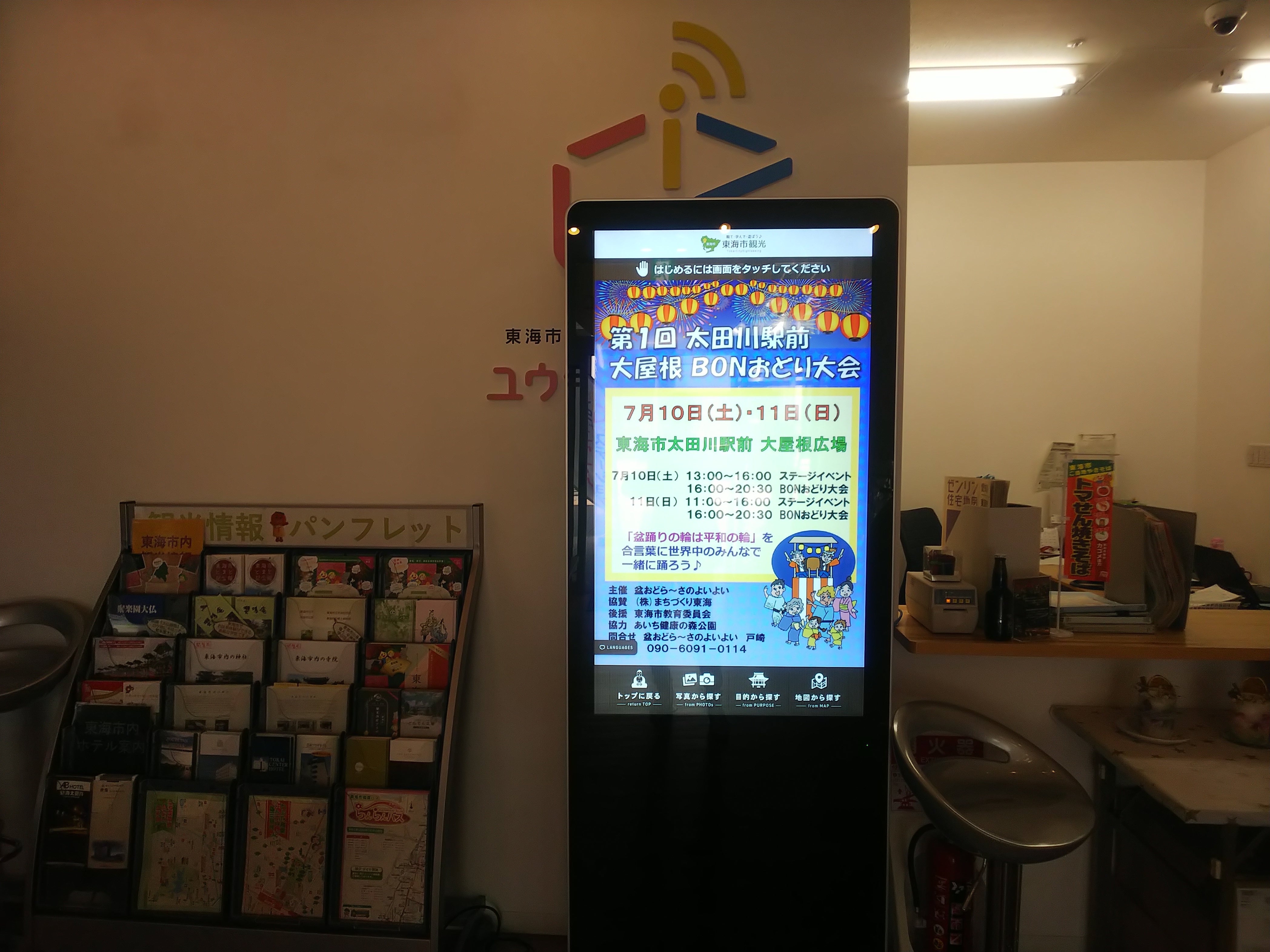 ステーション内の大きな画面では『第1回太田川駅前大屋根BONおどり大会』の案内が流れています。