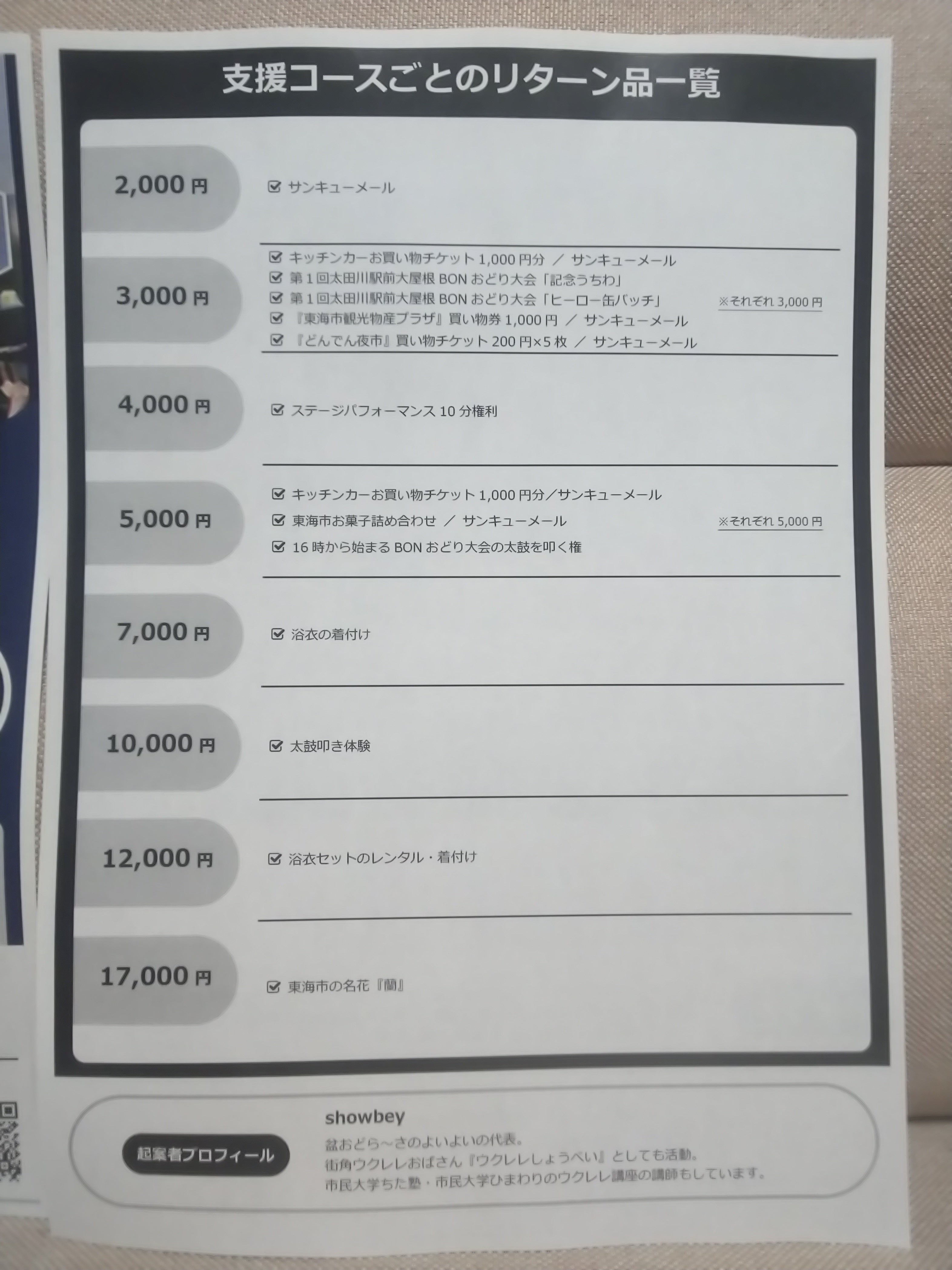 一口4000円の支援で10分のステージ確保です。一組3口まで。