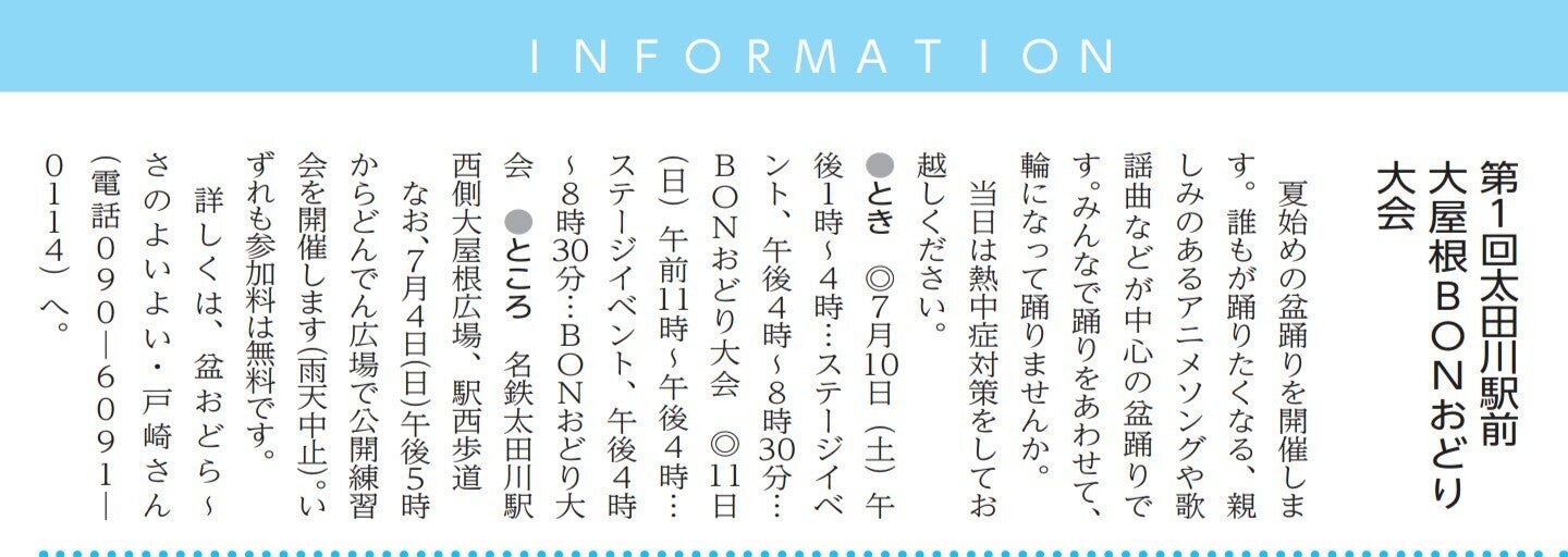 あちらこちらで、【第1回太田川駅前大屋根BONおどり大会】のお知らせが目につく頃になりました。