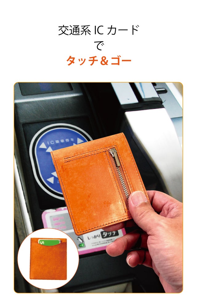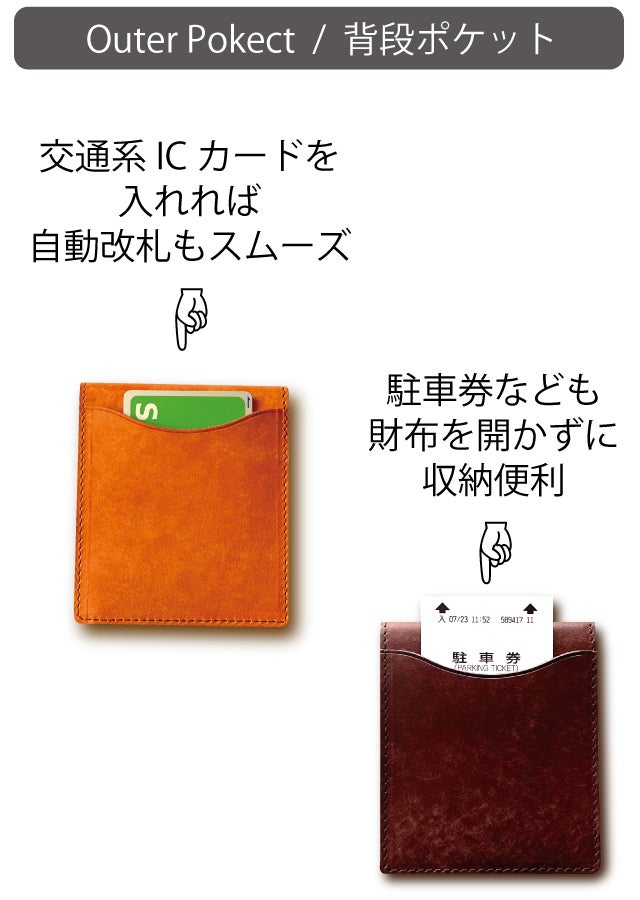 背段ポケットには、交通系ICカードや駐車券を収納可能。自動改札の通過時にも財布を開くことなくスムーズです。