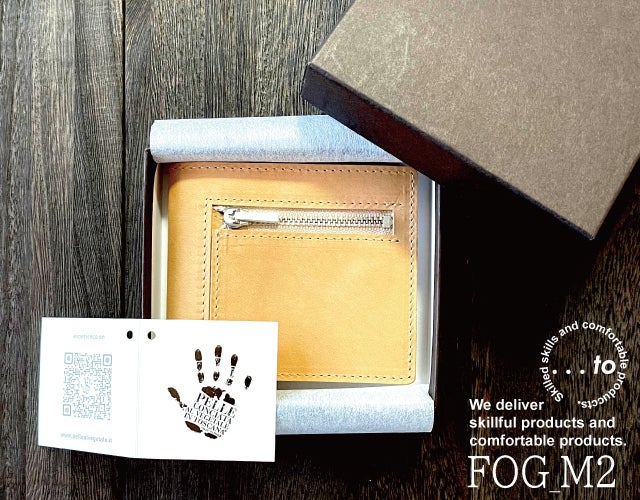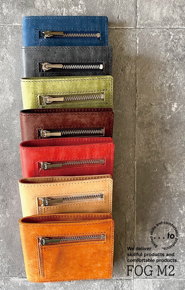 この【...to®・FOG_M2(フォグM2)』は、カードの枚数によってカードスペースが可動し、常にホールドする構造(特許庁意匠登録済・第1676247号)を備えながらも、重さはわずか「約62g」。計算しつくした設計と1級職人の技により、使い心地が良く上質な財布に仕上がりました。