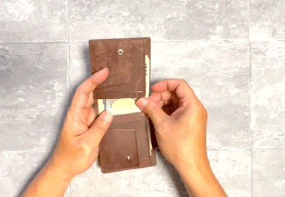 一般的なカード段は長年使用していると、入れているカードの厚みに合わせて革が変形してしまうため、枚数を少なくすると抜け落ちやすくなるという経験をされた方もいらっしゃるのではないでしょうか?【...to®・FOG_M2】は2枚のフラップが可動する事で問題を解決。