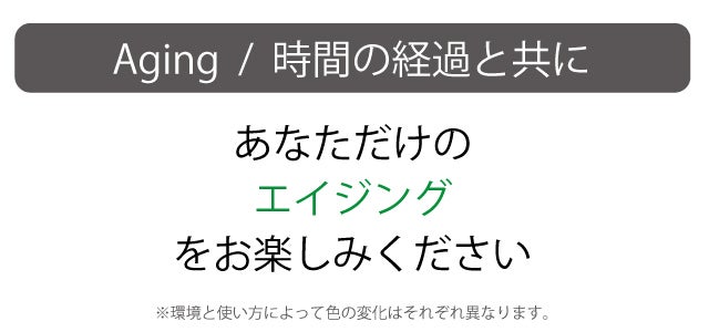 ※エイジングを重視した素材になっている為、外からの刺激<水やオイルなど>をとても受けやすい革になっております。この点をご了承の上、ご支援をお願いいたします。