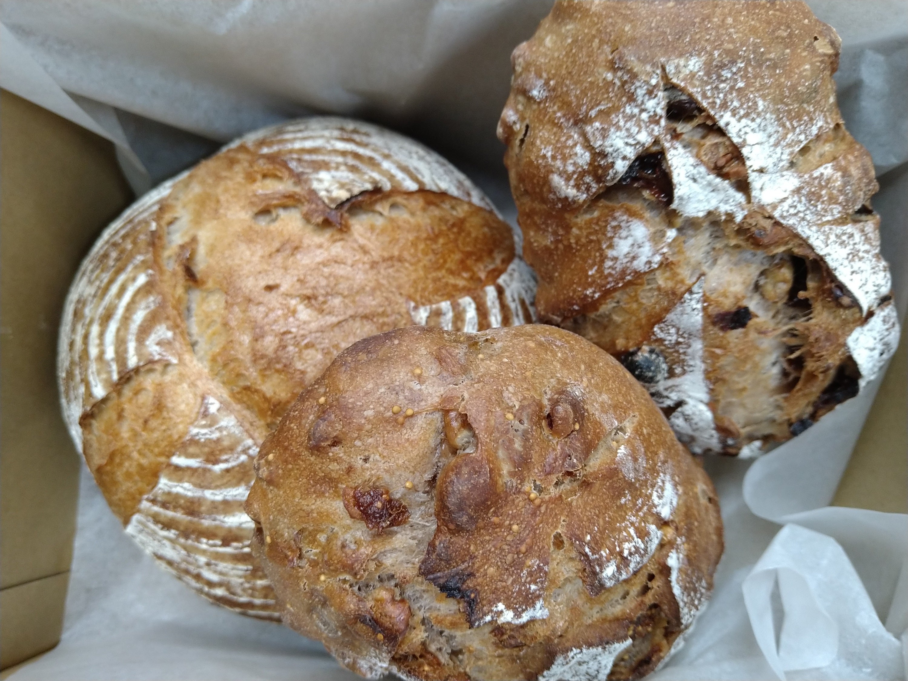 7~10種類のロスパン2,500円~3,000円相当を60サイズの箱にできるだけ詰めてお届けします。