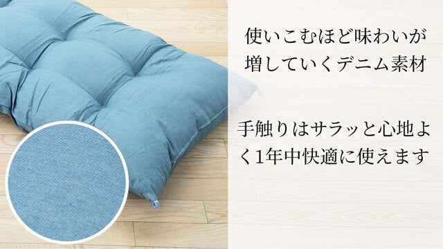 デニムのクッションで、様々なお部屋にも馴染む