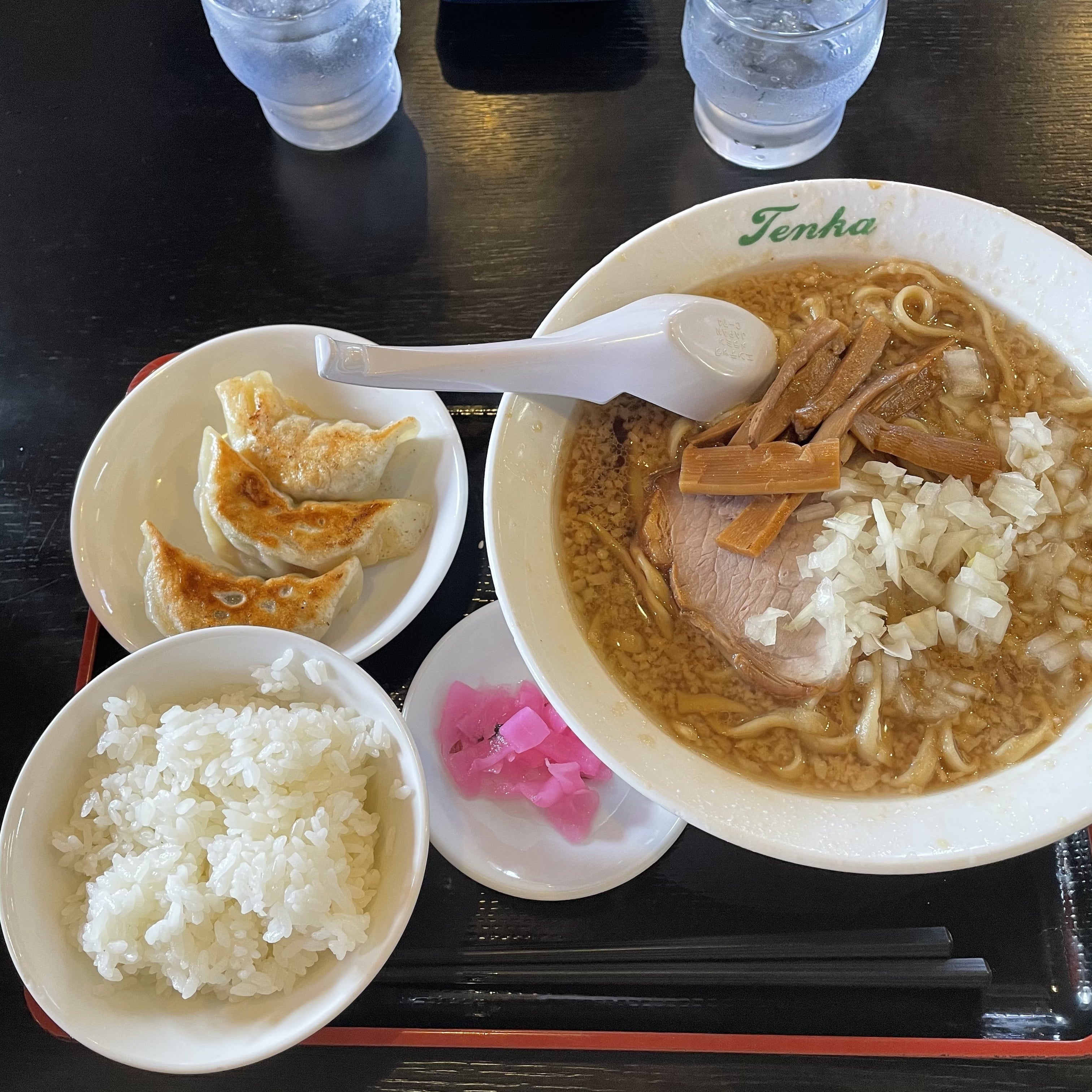 (ラーメン+餃子3こ+半ライス、おしんこ)