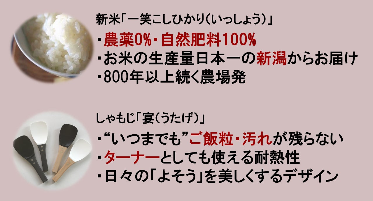 新潟県のお米と、それをよそうしゃもじで「変化のない食事の時間を華やかに、贅沢に」いたします!!