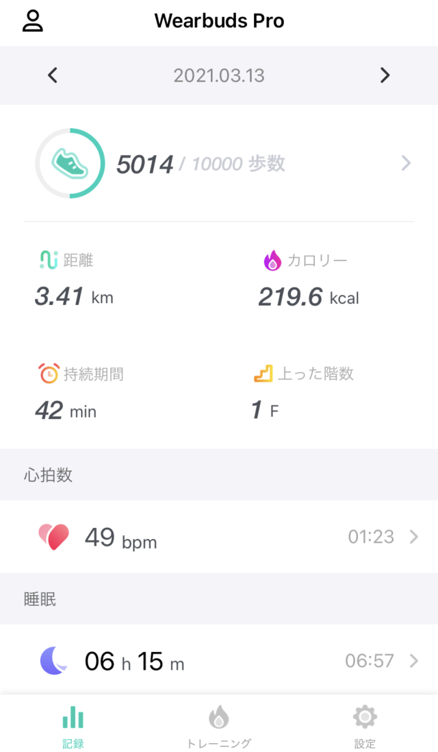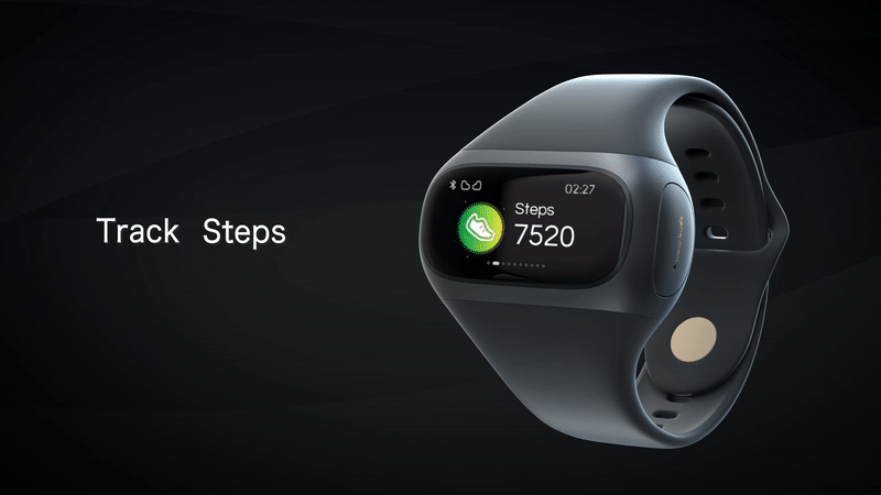 睡眠、歩数、上った階数、心拍数のリアルタイムモニタリングがサポートされており、消費カロリー計算が可能です。ウォーキング、早歩き、サイクリングの3つのアクティビティモードがあります!