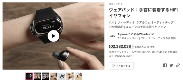 第一世代Wearbudsはアメリカ大手クラウドファンディング2サイトにて、16,231名から総額約2億円の資金調達に成功いたしました!!