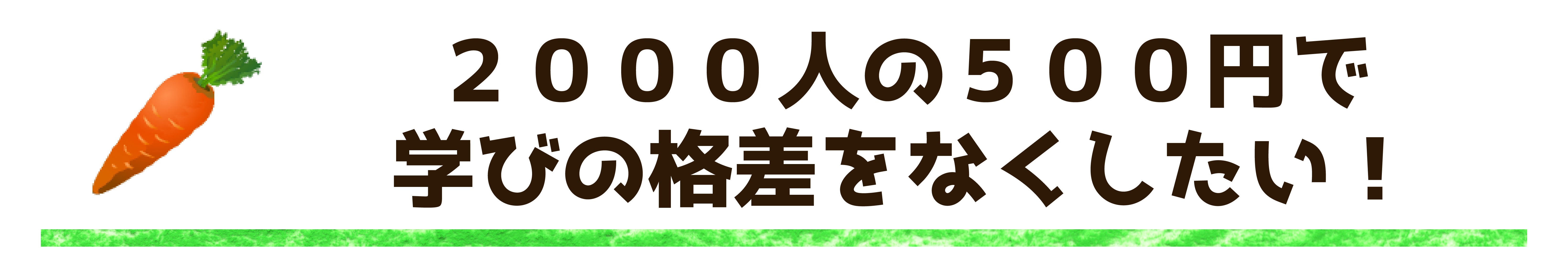 今回のクラウドファンディングでは私たちが提供するプログラムを経済格差に関係なくどんな方でも参加頂けるように、独自の助成枠の設立に向け2000人の支援者から500円の支援頂くことを一つの目標にしています。