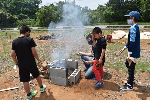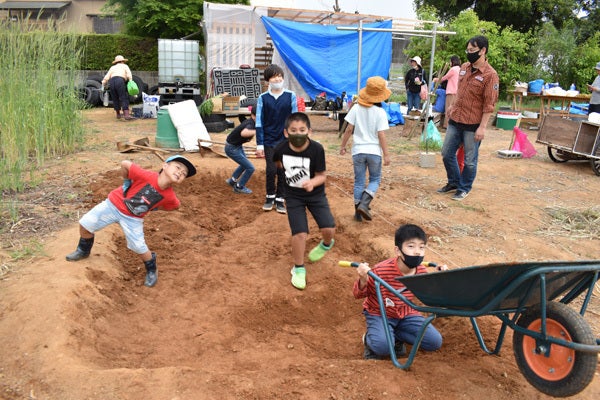 「作れるものは自分で作る!(自給自作)」と「自然の循環の仕組みを学ぶ」をテーマに、畑作業や花壇作りのほか、竹や廃材を使って小屋やアスレチックを作ったり、薪でご飯を炊いたり、リヤカーに乗ったり‥‥。