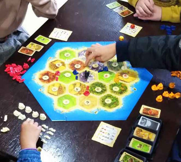 そこへ、近所のフリースクールに通っていた中学生のT君が遊びに来るようになり、ある日、家庭教師のH君、T君、 息子、私の4人で、家にある「パンデミック」や「カタン」「ニムト」などのボードゲームを夜遅くまで夢中になって遊んだ時がありました。