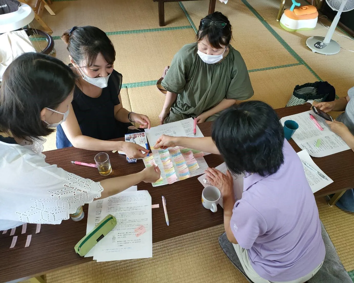 相手の問題行動は見ずに、相手の幸福な未来像を描き、相手の強みを生かした支援を作るというもので、7月10日(土)は講師に鈴鹿市在住の日本アドラー心理学会認定家族コンサルタントの平野薫さんにお越し頂き、NPO法人shiningのスタッフメンバーでケアミーティングを開催しました。