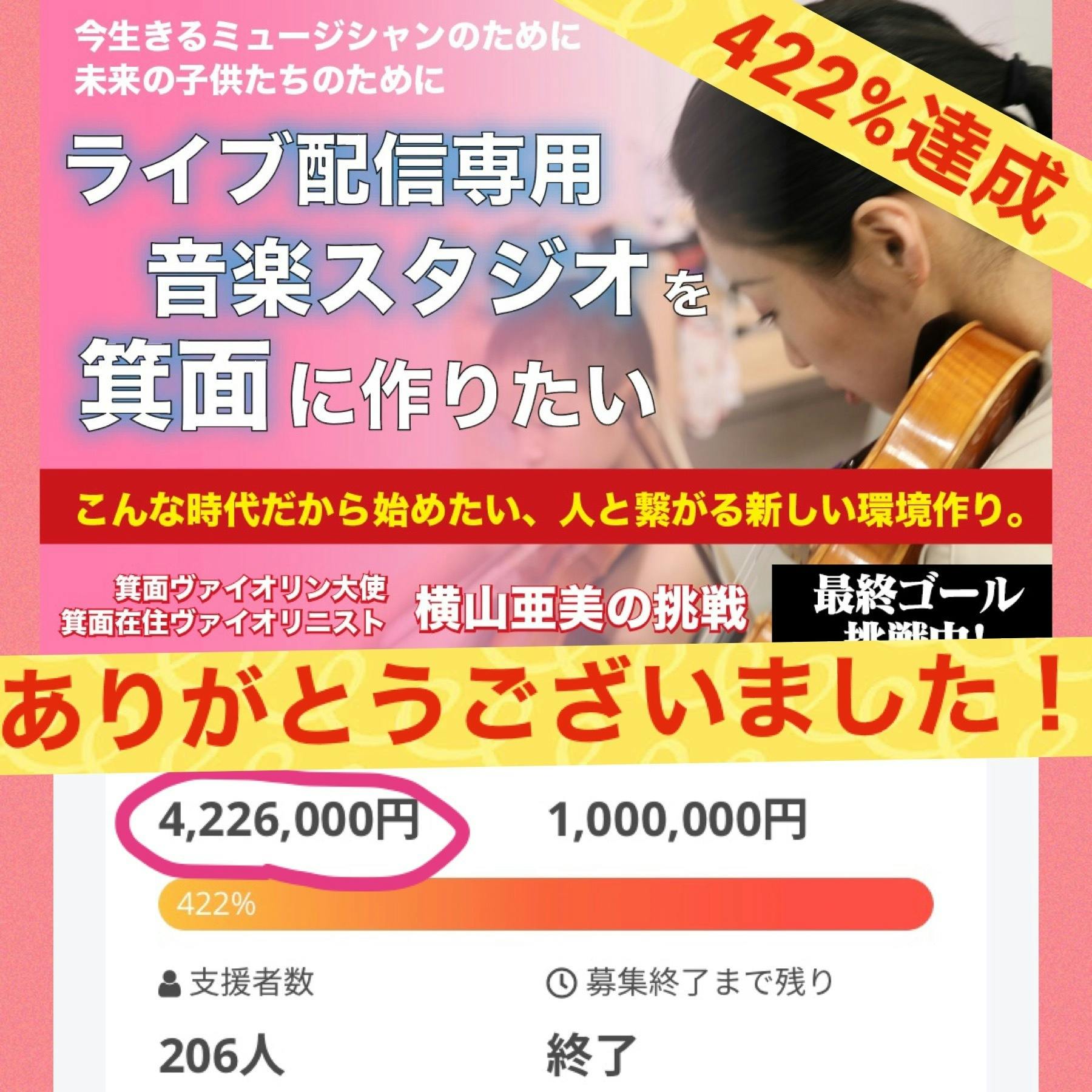 こちらの資金でスタジオの防音工事、配信コンサートに関連するシステムづくりの資金確保に成功いたしました♪