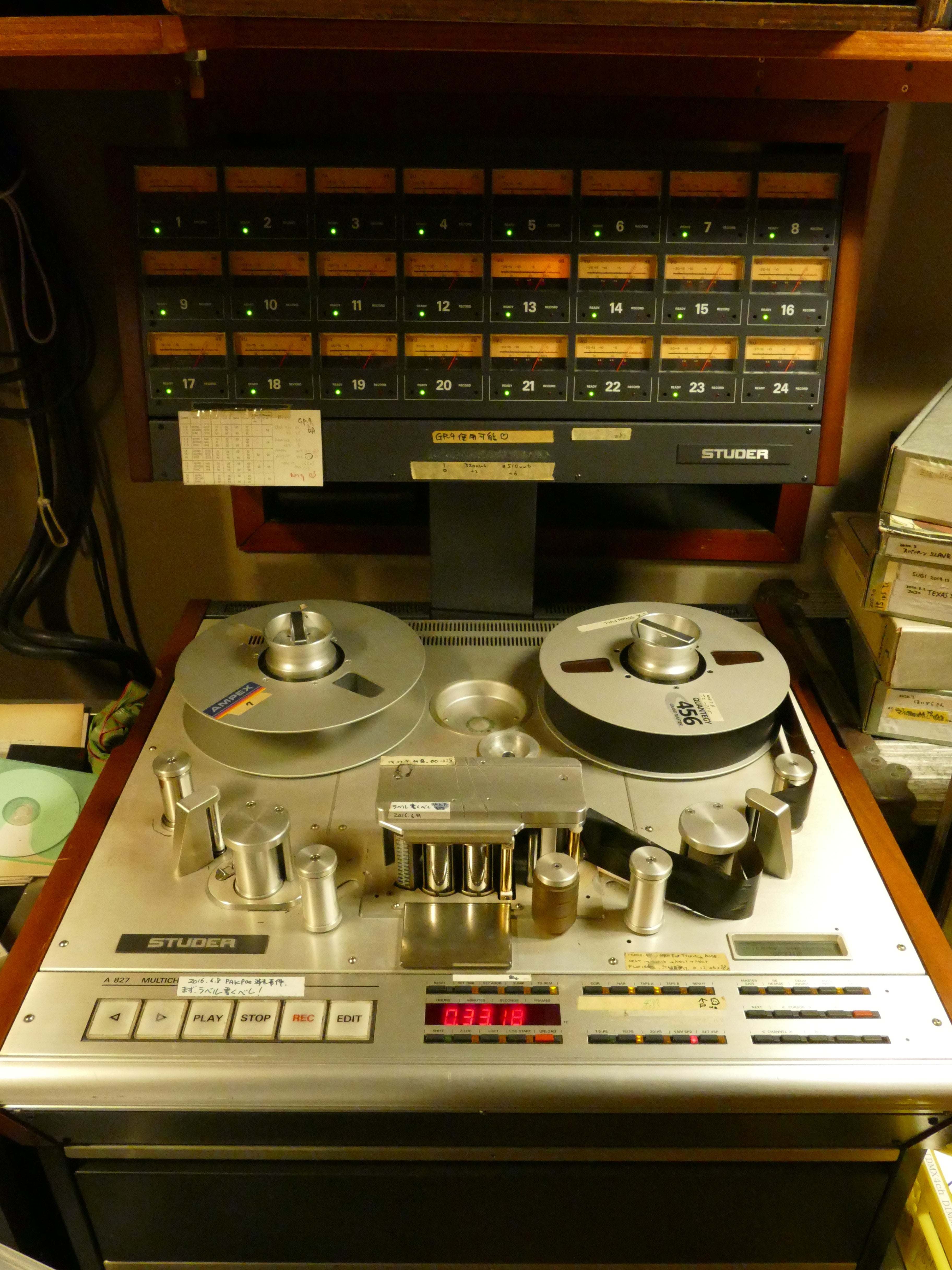 別室マシンルーム、24Tr Studerレコーダー、1/2 16Tr×2のアナログレコーダーの設置。