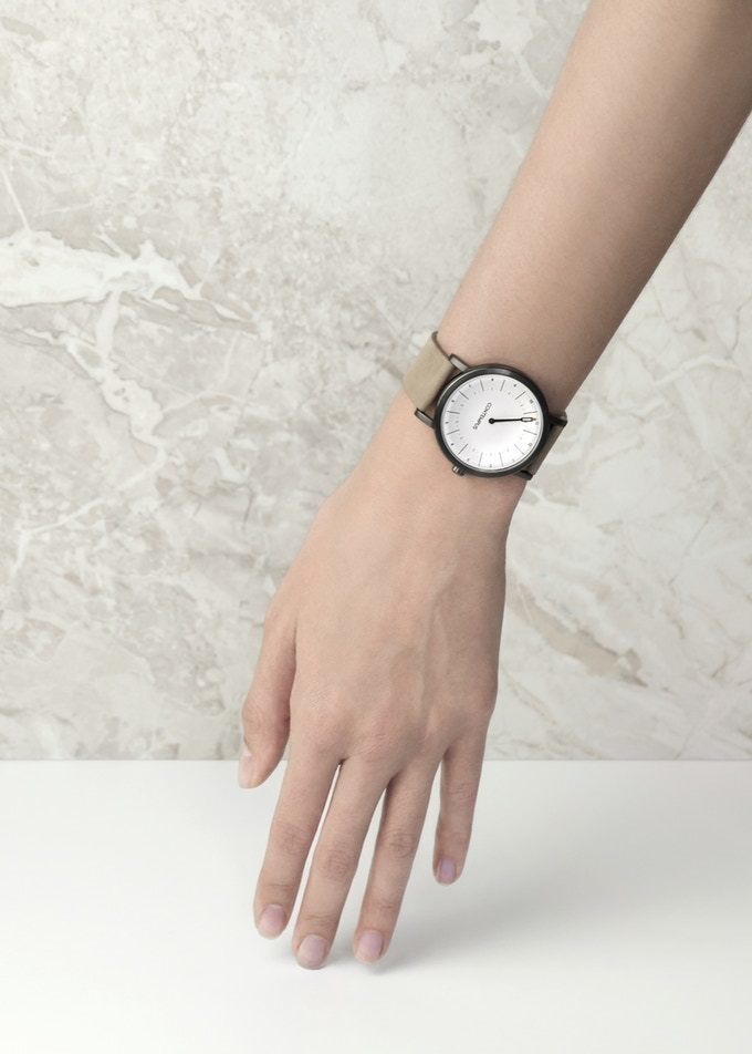 スカンジナビアンデザインが持つシンプルさとミニマリズムを表現するために、簡潔でシンプル、清潔感の漂うデザインに仕上げました。それは、外見だけでなく、文字盤のダイアルレイアウトに至るまで隅々に反映されています。