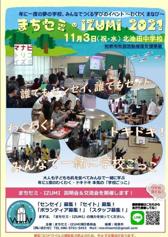 現在「まちセミ・IZUMI実行委員会」が、朝から夕方まで、みんなで「学校ごっこ」を楽しめる企画を考案中です。乞うご期待!