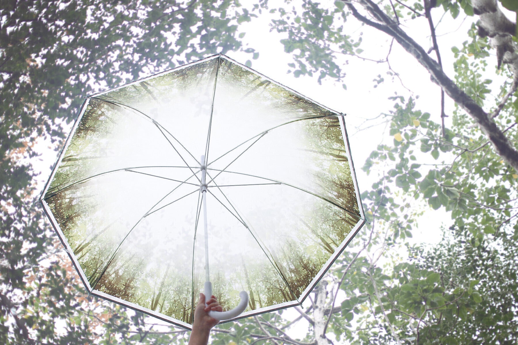 そんな『ハッピークリアアンブレラ』の中でも今回特にお勧めしたいのが、まるで森の中や水の中にいるような、自分だけが独り占めできる風景が広がるデザイン。