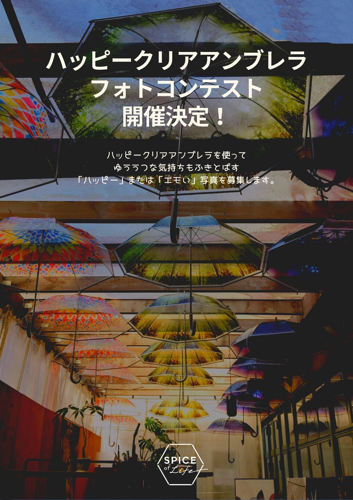 【暮らしをちょっとだけ変える 「気づき」のある雑貨】をコンセプトに販売しているSPICE OF LIFEでは、そんながっかりやうっかりをなくし、雨の日の外出を楽しくする商品『ハッピークリアアンブレラ』を販売しています。