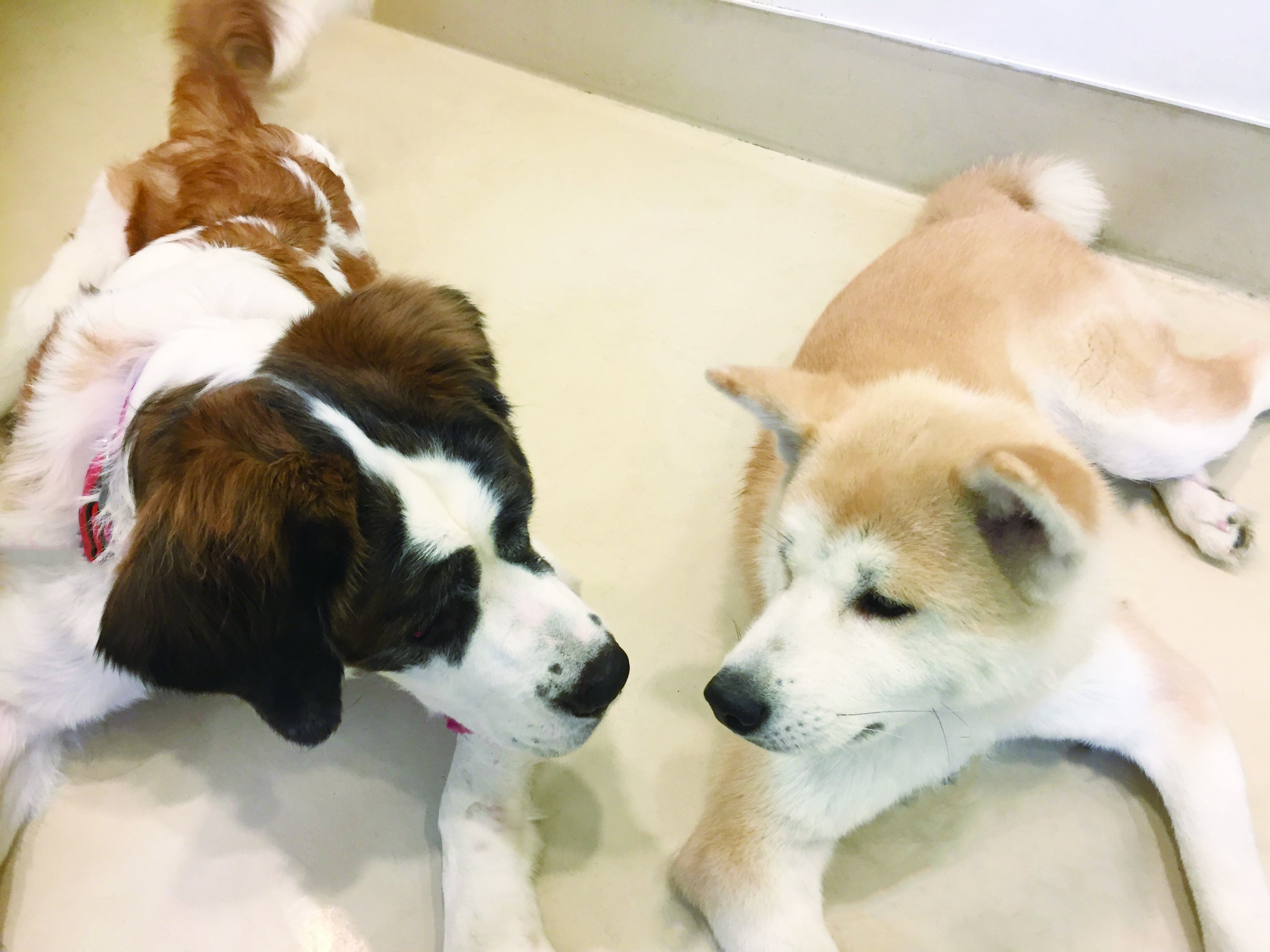 大型犬のセントバーナードやシェパードとも触れ合うことができます。