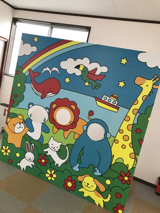 かわいい動物達がデザインされた壁面を