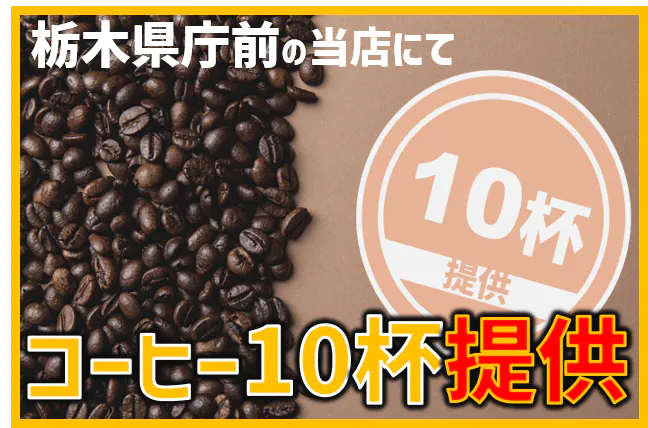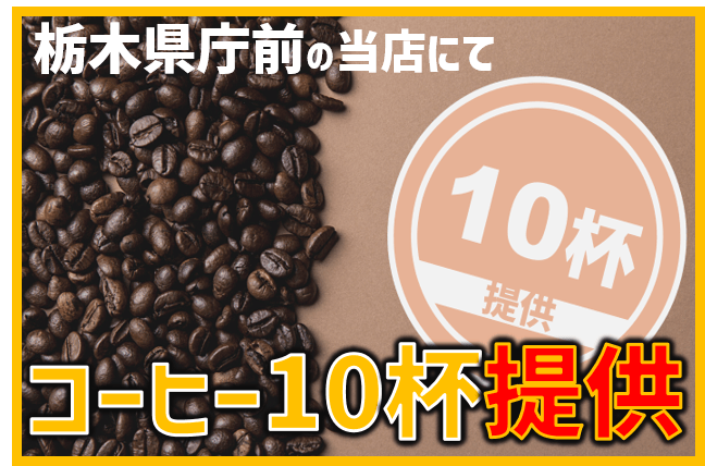 ●「コーヒー10杯無料チケット」3,000円(栃木県庁前にオープンするカフェのコーヒー10杯提供 )