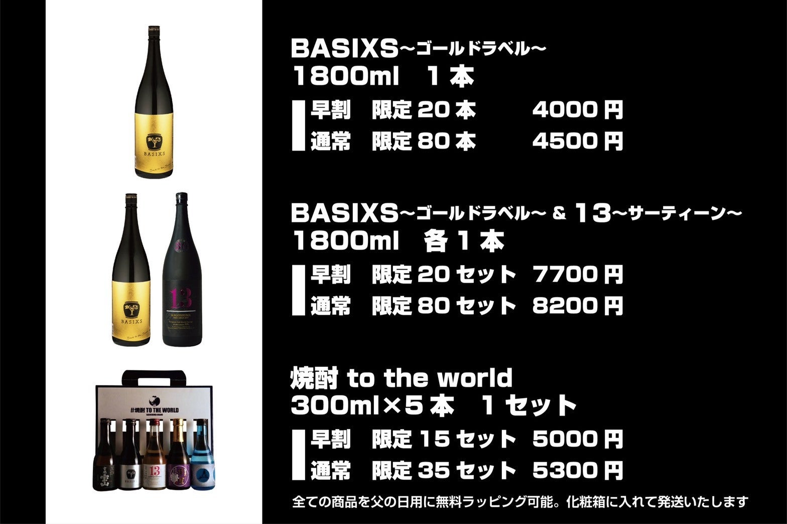今年の父の日には、自宅でお楽しみいただける完全予約販売、限定焼酎を贈ってみるのはいかがでしょうか。
