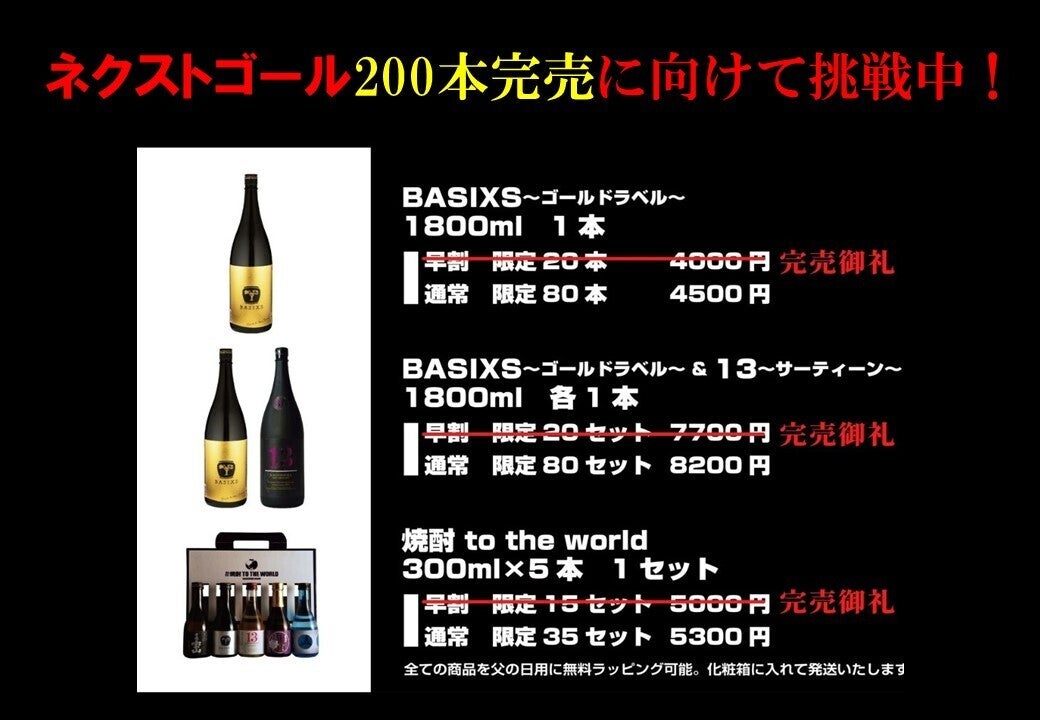ファーストゴールを達成し、現在はネクストゴール100万円、そして限定であるゴールドラベル200本の完売に向けて、挑戦を続けています!