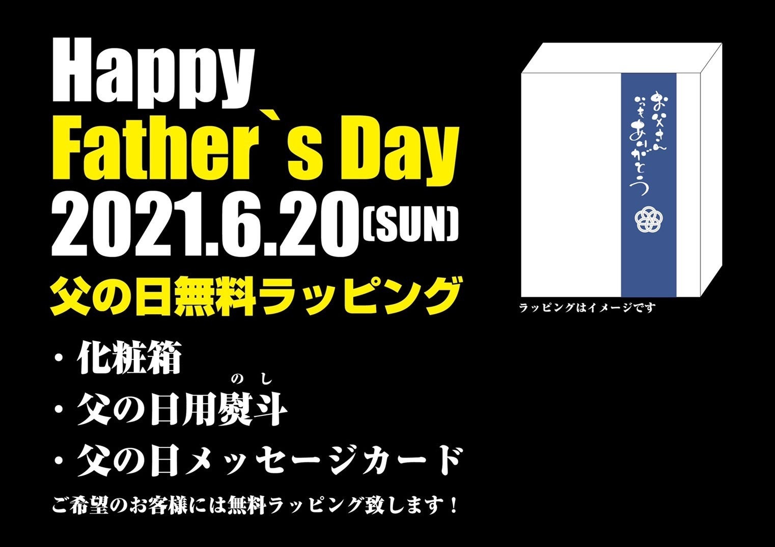 又、今回限定で、希望者の方には父の日ギフトとしての無料ラッピングもご対応!