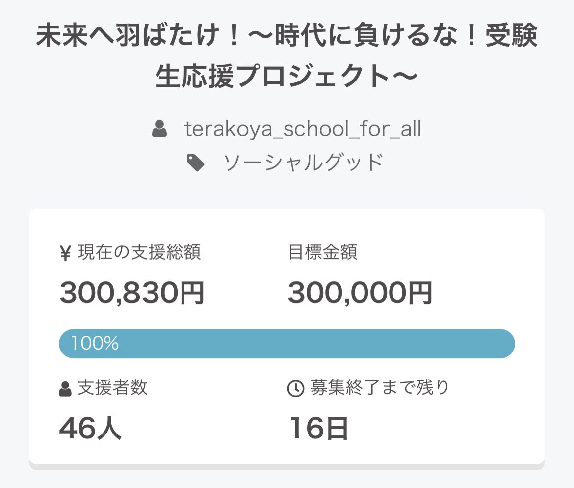 大変お世話になっております。テラコヤ代表の前田です。本日も皆様のおかげでカフェ塾テラコヤを開校することができました!本日は、生徒たちもセンター試験や大学入試の過去問をどしどし解いていました。実践力が身に付いて来たことをとても嬉しく思います。非常に順調かと思います。皆、3時間しっかり集中して、勉強していました。また、ある生徒は、公募制推薦を受けるということで、志望理由書を書き始めました。将来の夢を一対一で話をしながら、言語化していく。そのような形で進めていくので、その子の夢を一緒に形にしていっている実感があり、私自身もワクワクする時間を過ごさせて頂きました。ありがとうございます。是非、皆様にも少しでもこの雰囲気を伝えられるよう、拙文ではありますが、努めてまいりますので、今後ともどうかよろしくお願いいたします。来週はもうクラファンは終了しており、この場では活動報告できませんが、何かしたらの形で皆様にカフェ塾テラコヤの活動をお伝えしてまいりたいと思います。その方法について、何か案がございましたら、お伝えください。よろしくお願い申し上げます。カフェ塾テラコヤ代表前田和真