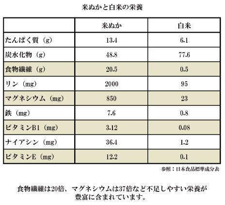玄米の表面をけずって精米するとできるのが「米ぬか」です。この中には米に含まれる栄養素の実に9割以上が含まれています。
