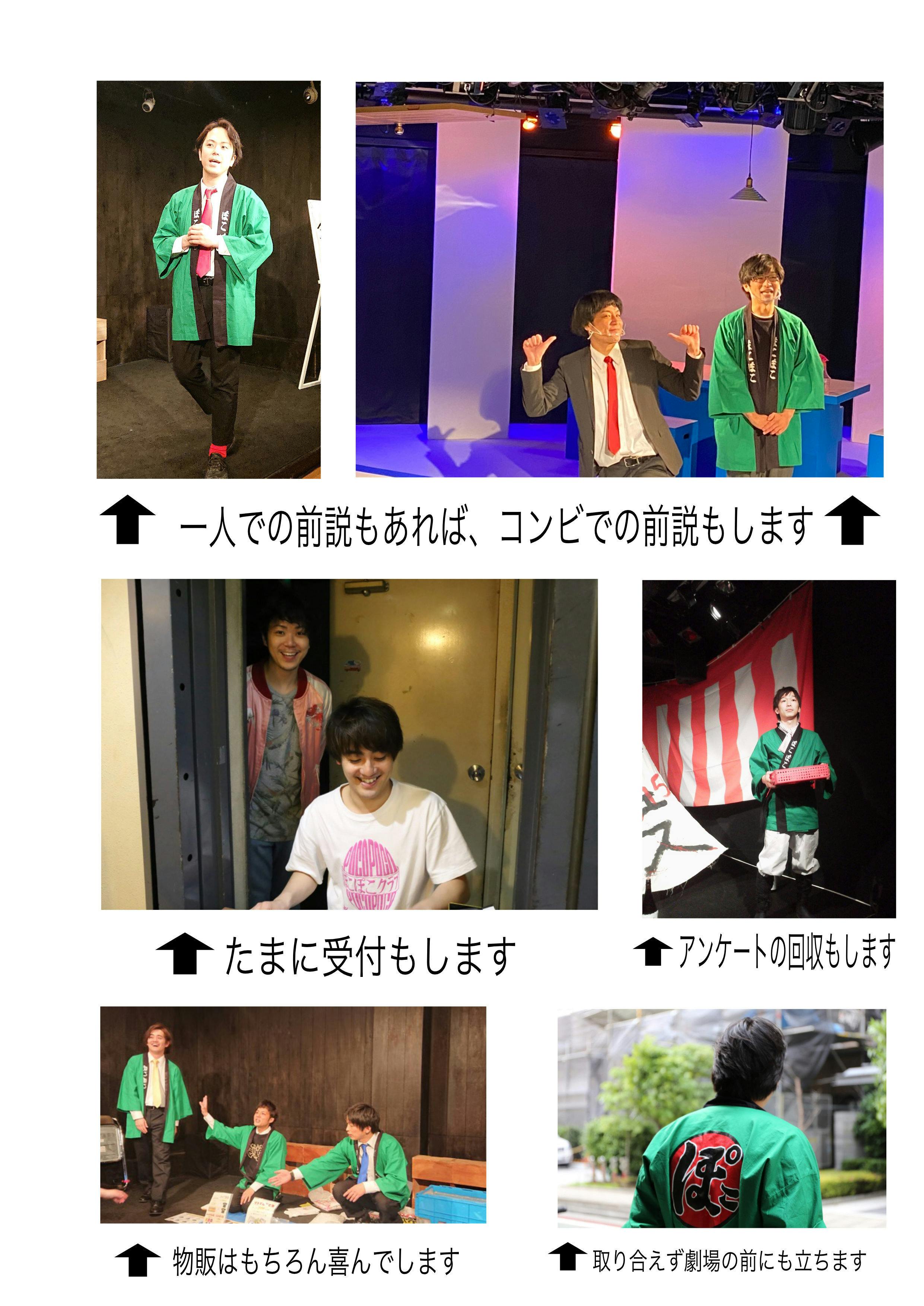 ぽこぽこクラブは開演ギリギリまで劇場入り口や座席のご案内、前説、そして終演後もお見送りや物販などで必ず会場に居ます。もともと旗揚げ公演の際、メンバーが少なく人手が足りなかったのでそうした運営もやっていたのですが、今でもぽこぽこクラブのメンバーは全員(メンバーは今も少ない)で当日の運営をしています。