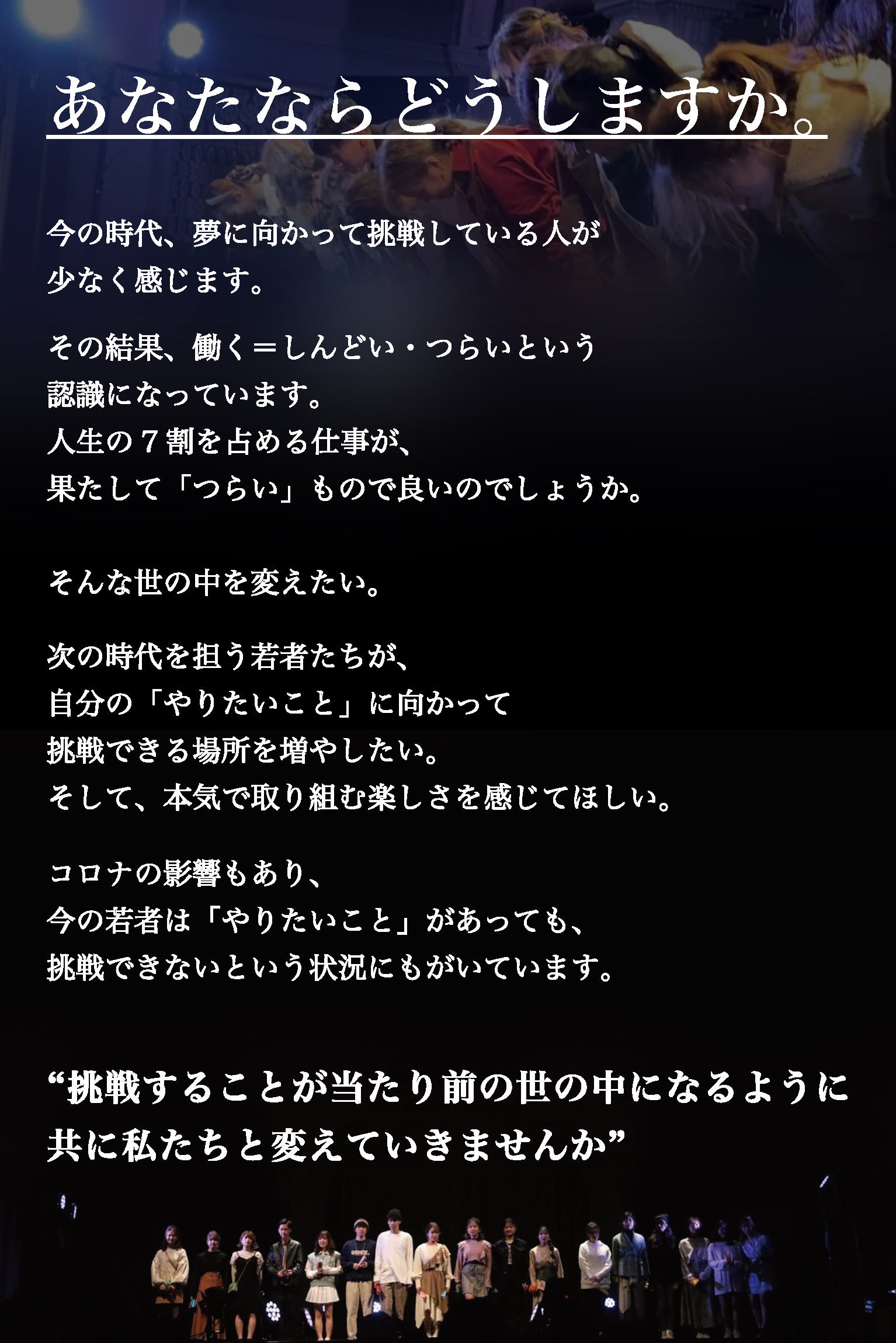 A:目標に向かって頑張っているモデルさんを見て、明日も頑張ろうって思ってくれる人が多くなってほしい。また、ファッションショーという場は様々な発表の場として良いイベントだと思ったためファッションショーを開催しています。