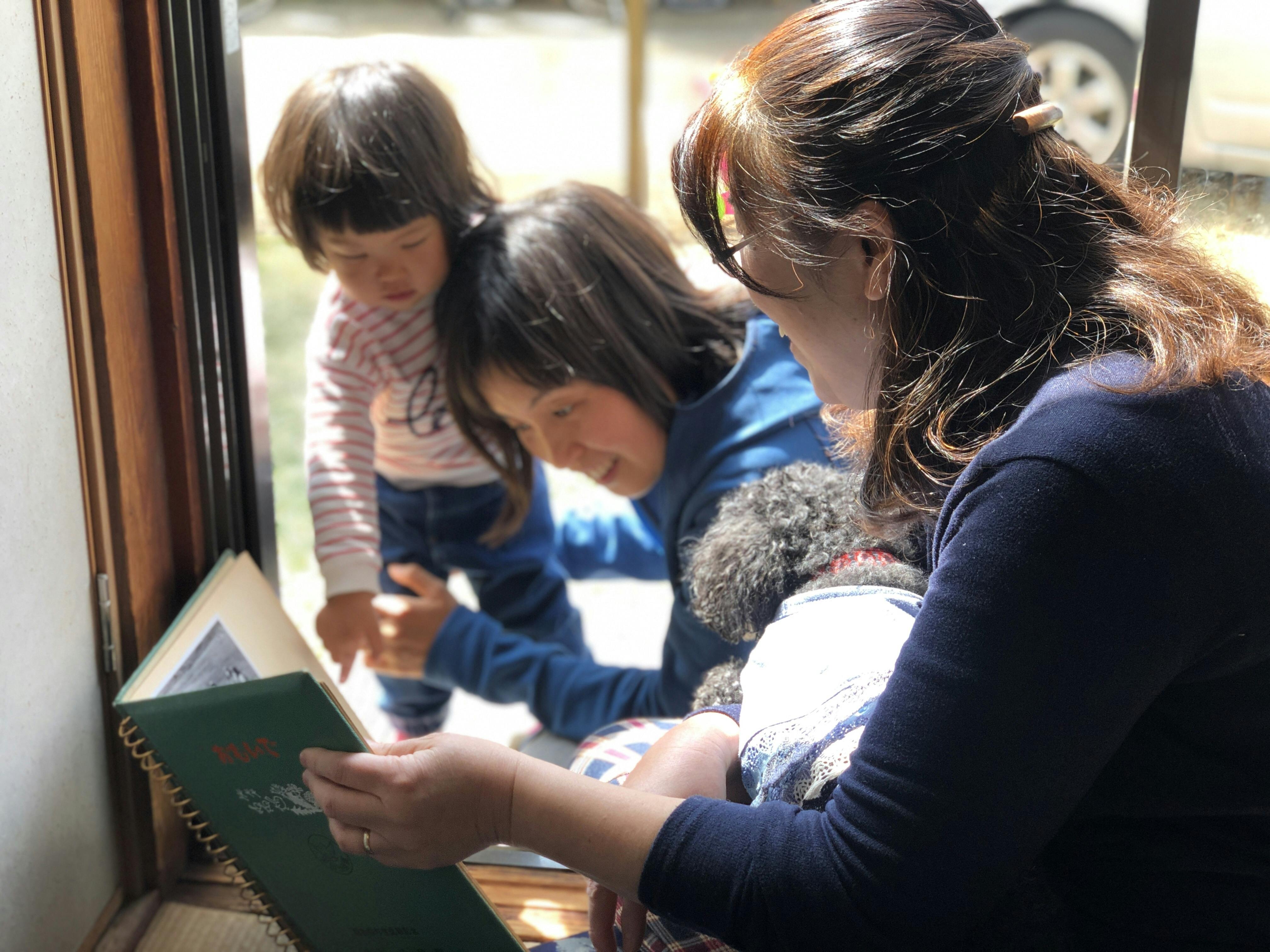 室内では、音楽、茶道、絵本やおばあちゃんの体験談に耳を傾けたり、